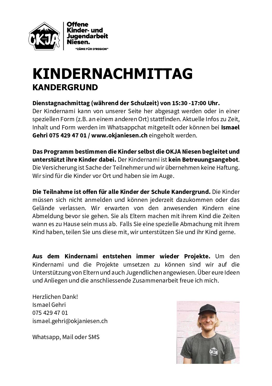 Ein offener Raum drinnen oder draussen für Kinder. Es wird gespielt, gebastelt, gequatscht, getanzt, gesungen…wonach Dir gerade ist. Das Programm des Chindernammi’s bestimmst Du, gemeinsam mit den anderen Teilnehmenden.