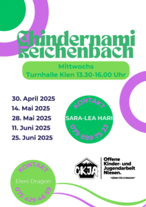Erlebt einen Nachmittag voller Spiel, Bewegung und Spass! Beim Kindernami in der Turnhalle Kien in Reichenbach bestimmen die Kinder das Programm selbst.