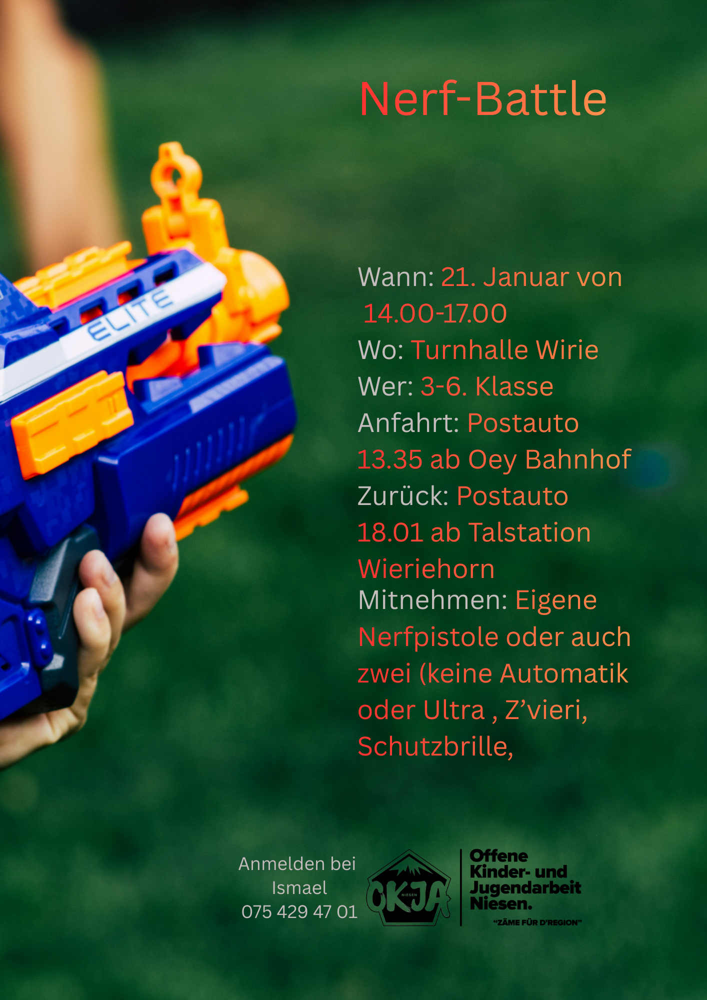 Mitbringen: Eigene Nerf. Nerfpfeile bringt die OKJA Niesen.
